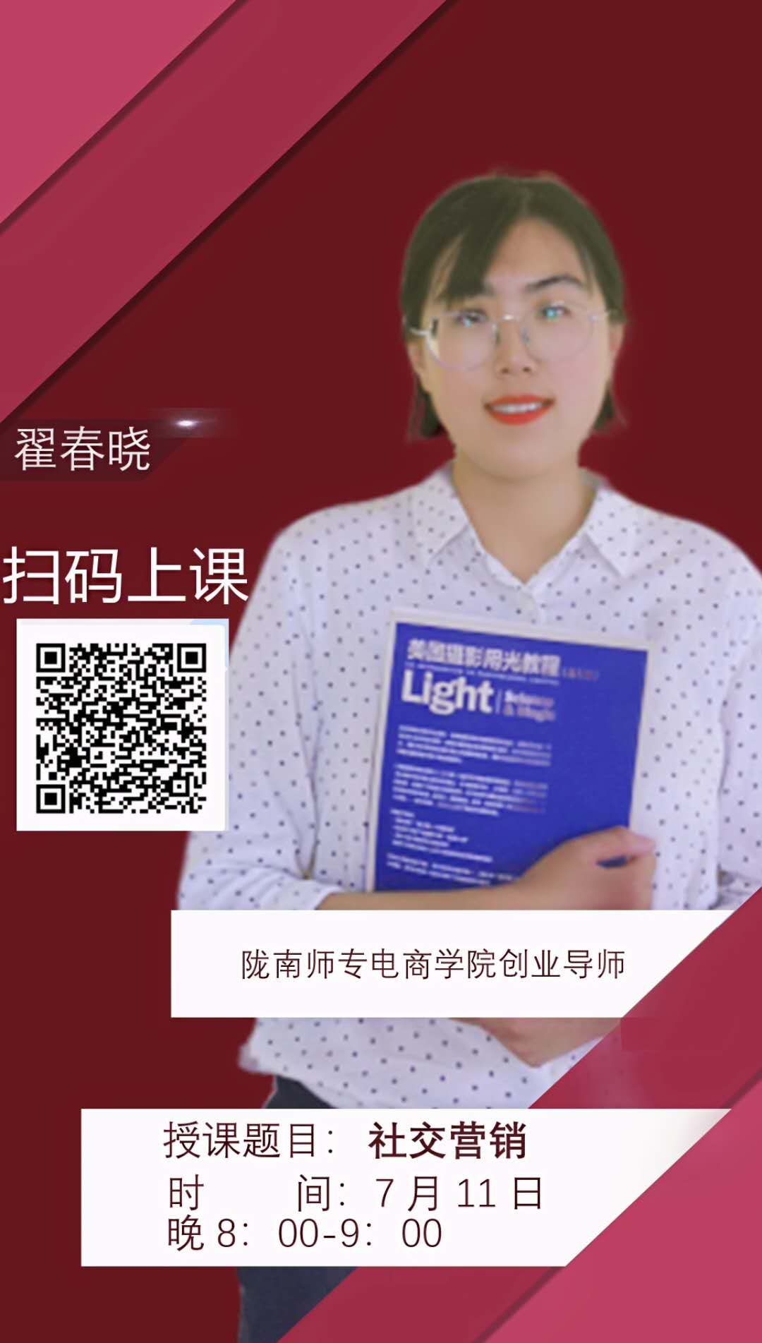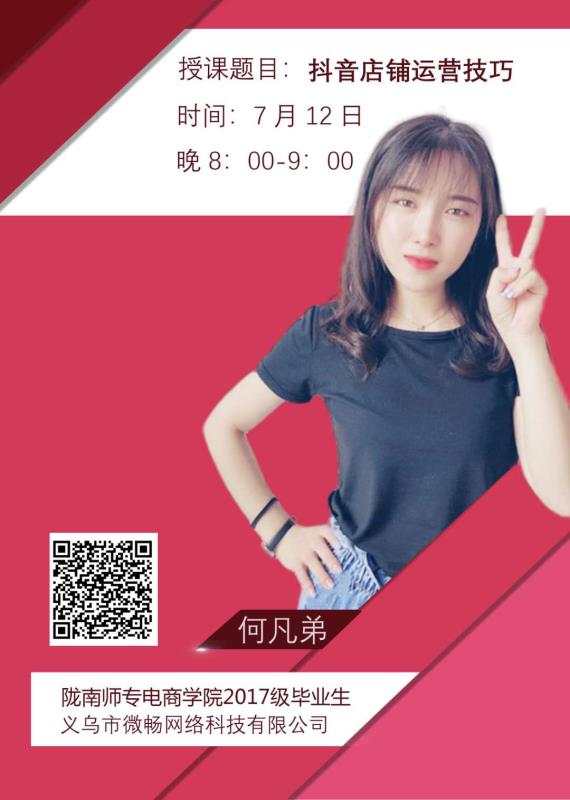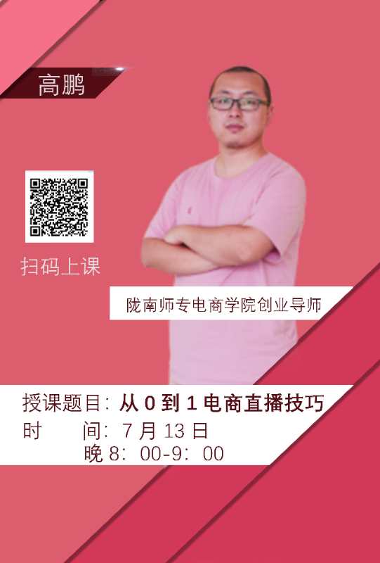 为进一步推动我市电商业态升级,提升电商从业者的知识储备,体现陇南师专beat365官方登录服务地方经济的专业定位,进一步推动直播带货,2020年7月8日至2020年7月13日,每晚8:00—9:00公司开展线上直播公开课活动。
