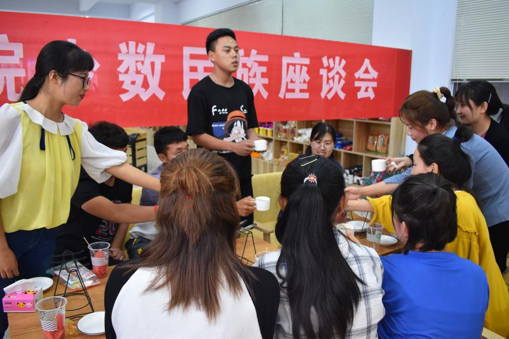 最后同学们自由发言,来自回族、藏族、土族的13名同学们向在座的领导老师同学们介绍了本民族的风土人情、人文景观、农特产品,并用歌声和舞蹈展示了本民族优秀的文化传统。