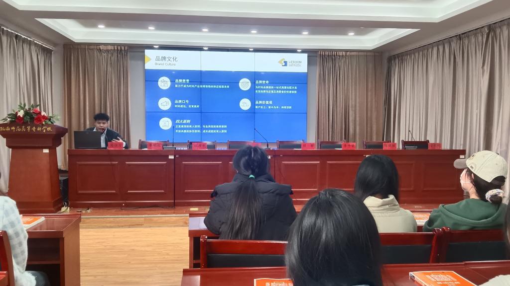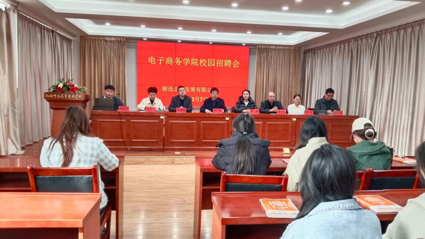 2024年3月7日上午,丽讯企业发展(上海)有限公司在beat365官方登录报告厅举行招聘宣讲会。公司领导、辅导员,2021级部分毕业生及2022级电商专业员工120人参加了宣讲会。