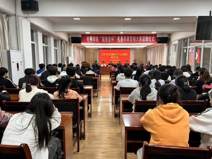 10月10日,公司“陇膳堂杯”礼县苹果营销大赛启动仪式在报告厅举行。公司党总支书记何炜、副书记杜理明,电商教研室主任王丽君,教学秘书安明明,就业专员李明红,辅导员胡景慧,以及2023级、2024级电子商务专业班同学100余人参加。启动仪式由何炜主持。