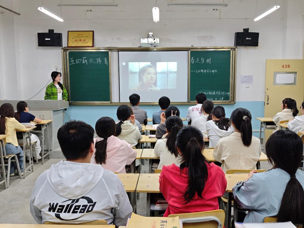 活动以短视频《觉醒年代》《五四风云》等片段切入,以真实史料还原了百年前青年学子“外争主权,内除国贼”的壮阔图景,展现了五四先驱以热血唤醒民族觉醒的感人故事。同学们全神贯注,时而为历史人物的慷慨陈词鼓掌,时而为时代洪流中的抉择动容。随后,员工代表结合史实讲述陈独秀、李大钊等先驱事迹,强调“爱国、进步、民主、科学”的核心精神。同学们踊跃分享对五四精神的理解,纷纷表示:“先辈用热血捍卫民族尊严,我们应以知识建设国家未来。