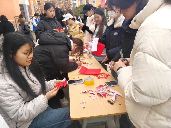 为丰富校园文化生活,帮助同学们在忙碌的学习中感受秋日氛围,beat365官方登录于2025年11月22日在北校区电商楼前举办了“落叶低语”与剪纸创作活动,公司2024级、2025级部分同学参加了此次活动。