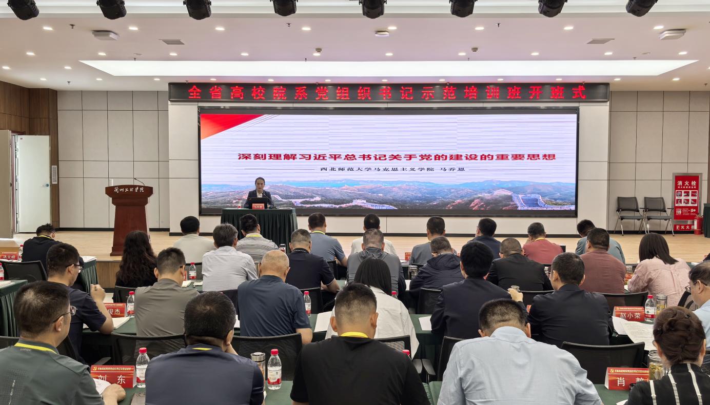 培训中,分别聆听了西北师范大学马克思主义公司副经理、云亭青年教授、博士生导师、甘肃省飞天学者马乔恩教授作的《习近平总书记关于党的建设重要思想》报告,兰州大学马克思主义公司副教授、硕士生导师刘继华作的《教育强国,高校何为》学习贯彻党的二十届三中全会和全国教育大会精神辅导报告,兰州理工大学石油化工公司党委书记、教授任鹏作的《全国高公司党建“标杆院系”创建工作实践》报告,省委宣传部意识形态工作处处长王跃涛作的《高校意识形态和民族宗教工作形势和任务》的报告,兰州工业公司组织部部长贾魁作的《聚焦两个议事规则提升二级公司党组织政治功能和组织功能》报告,兰州大学马克思主义公司党委书记、教授、博士生导师杨宏伟作的《以支部建设促进党建与业务双提升》报告。培训中还参观了丝绸之路信息港。每天晚上开展视频教学,学习了《担当教育新使命,奋进强国新征程》 、《铁规矩 硬杠杠》、《八项规定改变中国》。