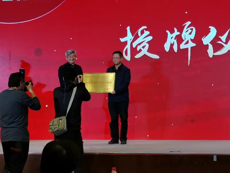 樊友山亲自向余学军授“农村电商人才实训基地”牌。