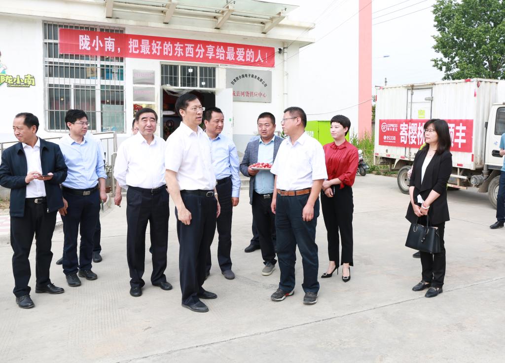 5月19日上午,省委常委政法委书记胡焯在陇南市副市长、成县县委书记李祥和公司党委书记余学军、董事长李艳红陪同下调研公司beat365官方登录入驻企业——陇小南电商网货供应中心。