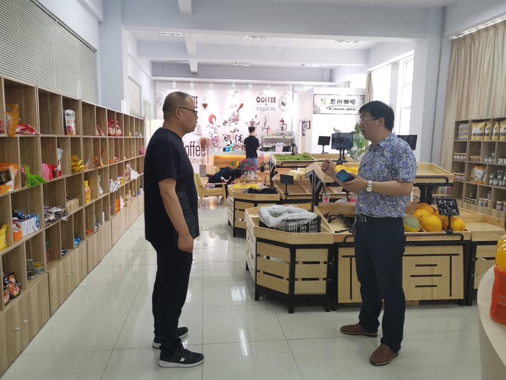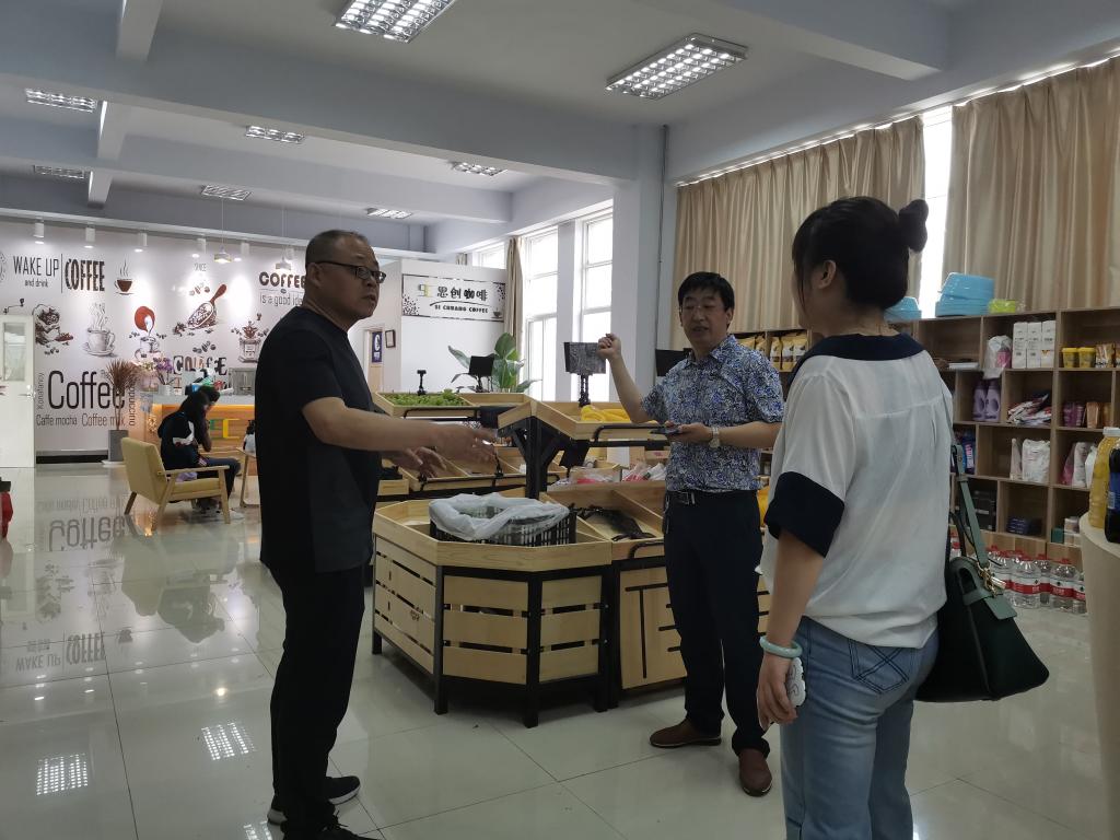 参观结束后,冉峰一行与公司纪委书记镡旭东、公司负责人何炜以及公司相关教师在公司会议室召开了座谈会,会上首先由公司负责何炜介绍了公司的基本情况,接下来双方就公司实习实训基地的建设进行了交流,冉峰表示未来将会按照公司实习实训基地的建设要求开展后续合作,并考虑以“建行大学”的方式开展电商人才线上培训,在人才培养方面做出贡献。