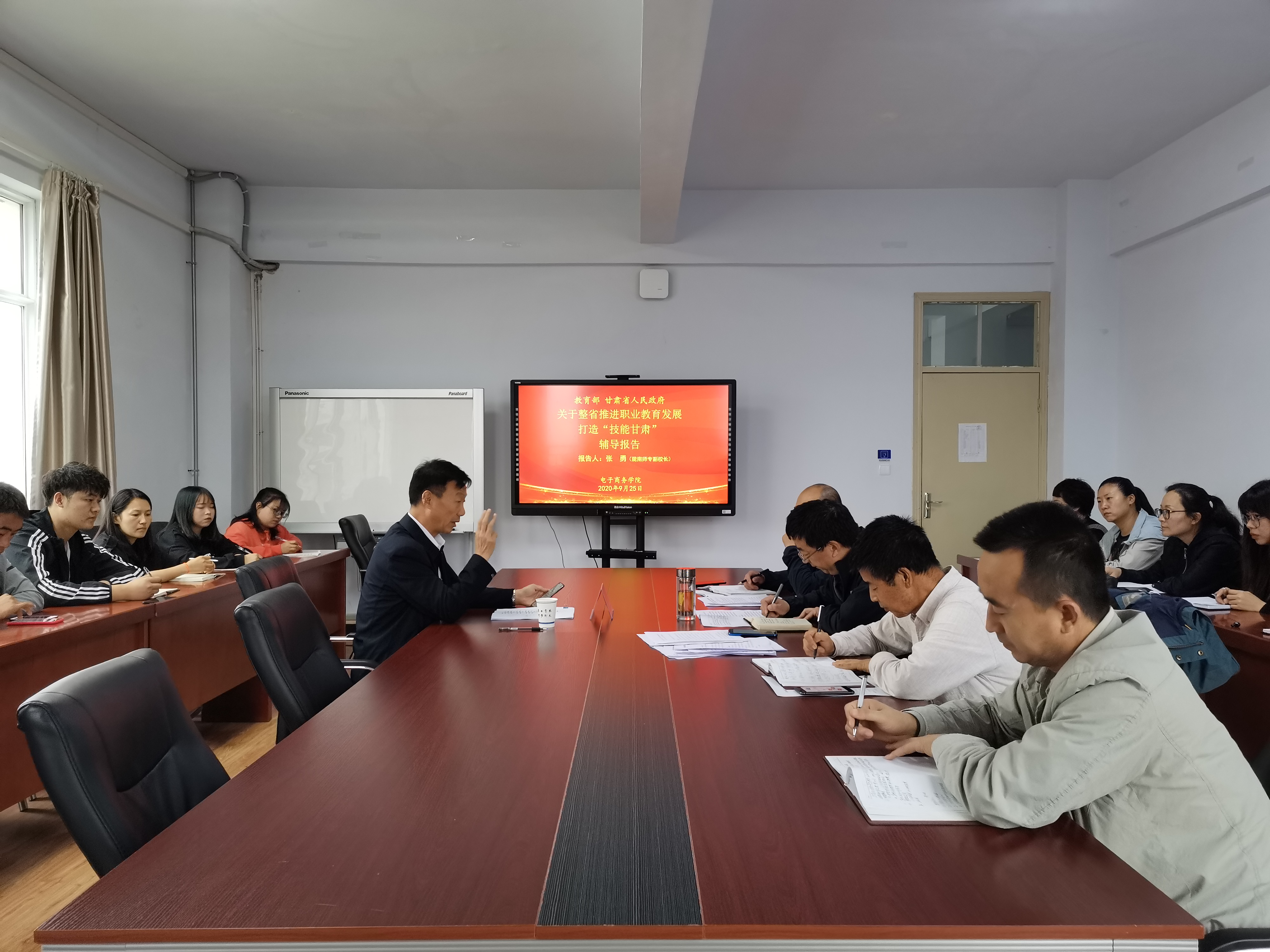 9月25日下午,陇南师专副董事长张勇到公司开展了关于整省推进职业教育发展打造“技能甘肃”辅导报告。公司全体教师及众创空间入驻企业负责人参加了此次报告。