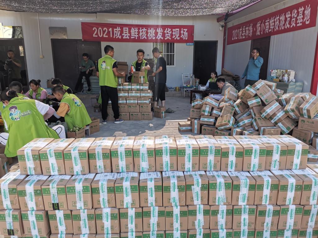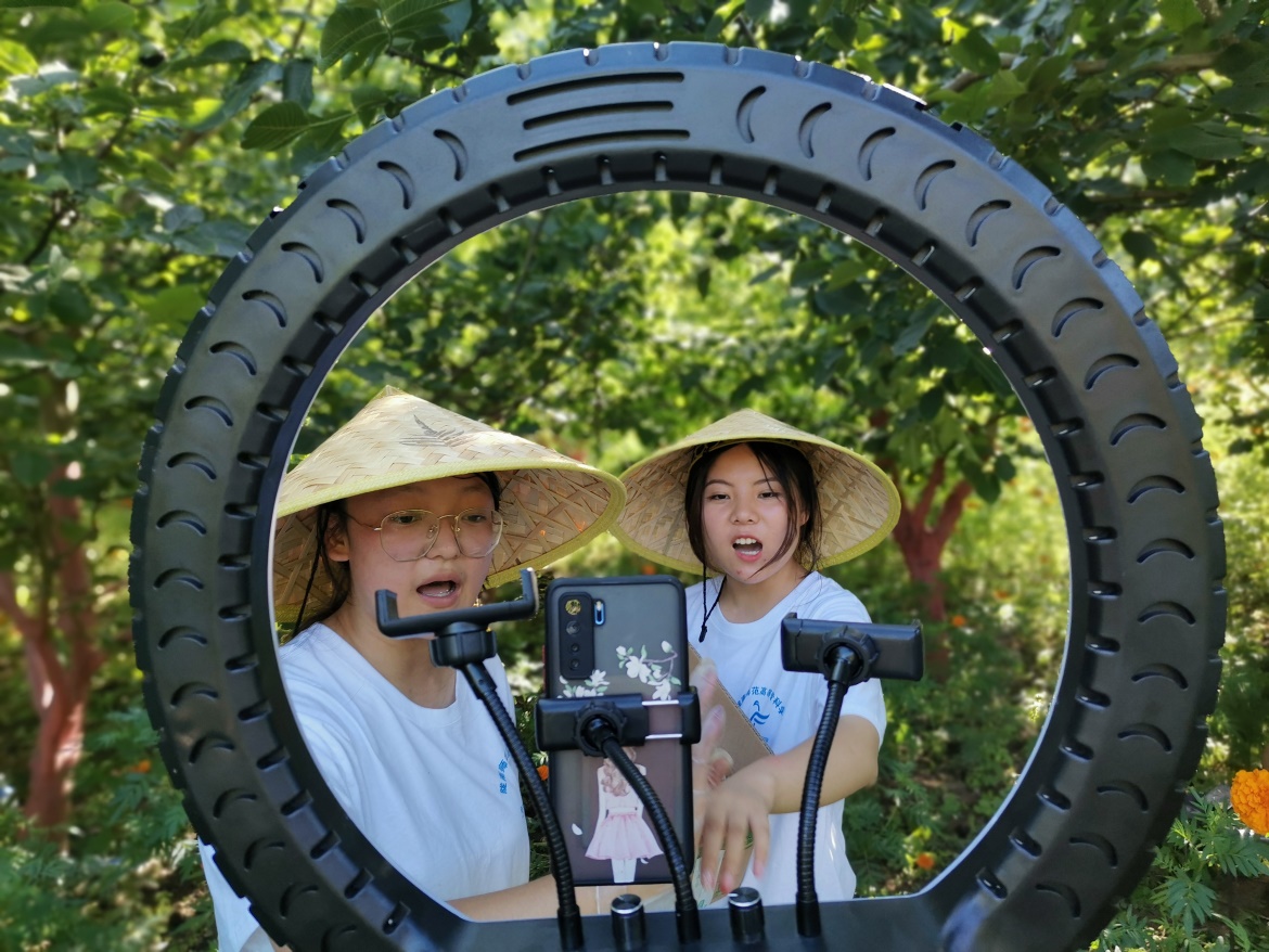 2021年7月30日,beat365官方登录党总支书记高峰、经理何炜带领暑期老员工直播团队赴成县林缘家庭农场-陇小南鲜核桃基地直播带货,20级电子商务专业员工高佳欣、魏玉婷担任主播、潘文明负责电商后台运营,在抖音直播间“江南农产品优选”进行直播,销售成县青皮核桃。