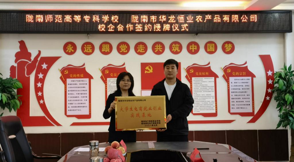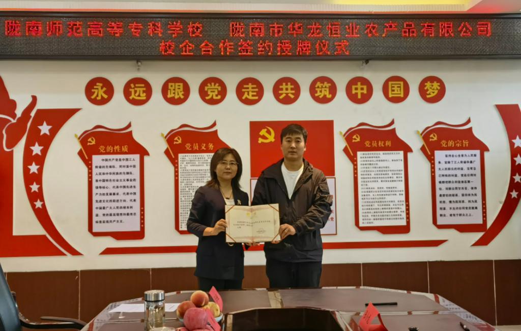 9月18日下午,董事长李艳红带领教务处、beat365官方登录负责人赴甘肃鑫园药业有限责任公司、陇南市华龙恒业农产品有限公司举行校企合作签约暨授牌仪式。