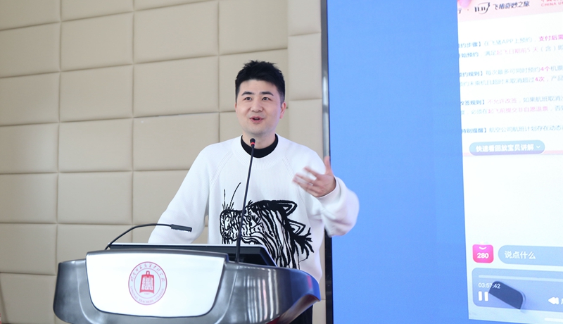 郑菁长老师为原浙江广电集团知名主持人;好易购频道首席购物专家;世界非物质文化遗产“西湖十景”代言人之一;淘宝双12人民的宝贝“金典之夜”金话筒主持人、阿里公益主播、蓝田扶贫好网红。本次讲座郑老师结合自身实战经验重点讲解了直播策划技术及直播带货技巧,并积极与现场同学互动,现场气氛非常热烈。
