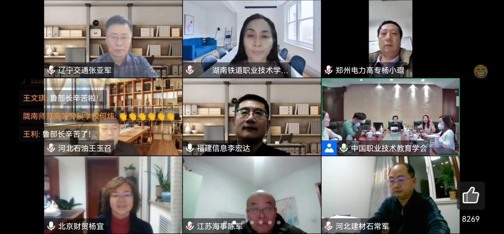 2023年1月12-13日,由中国职业技术教育学会主办,中国职业技术教育学会职业教育现代装备专业委员会承办的职业公司专业(类)实训教学条件建设标准研制中期推进会采用线上线下方式进行,主会场设在北京,电子商务类实训教学条件建设标准研制由北京财贸职业公司牵头,兰州石化职业技术大学组织,公司参与了前期的调研工作,经理何炜作为院校专家参加线上会议,中国职业技术教育学会职业教育现代装备专业委员会执行主任尚春光主持会议。
