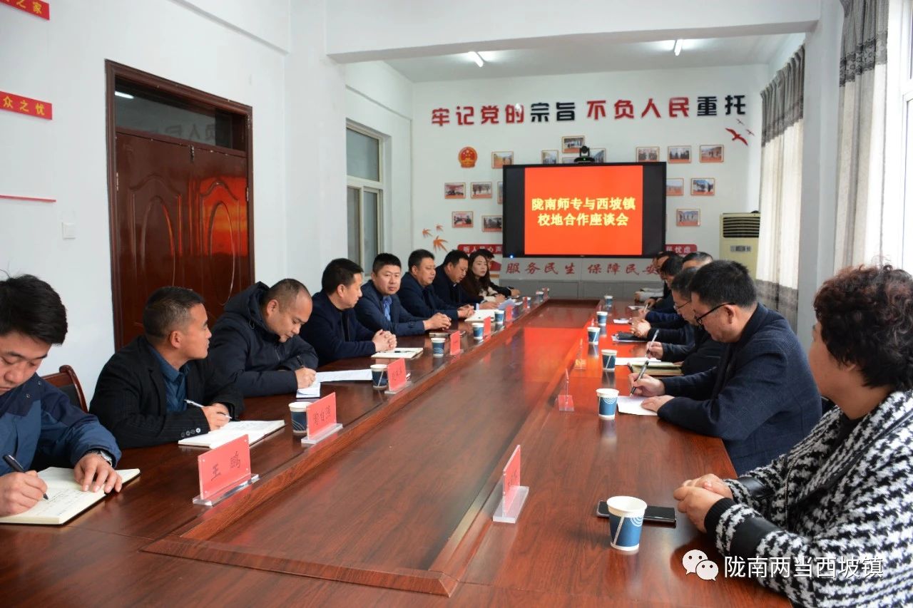 仪式后,双方就如何深入推进校地合作,依托公司人才智力资源和电商直播优势,助力西坡特色产业及电商工作发展,召开了座谈会。会上,西坡镇党委主要负责人介绍了西坡镇基本情况及特色农业产业发展情况。两当县委常委、政府副县长杨波作了重要讲话。公司党委委员、纪委书记、监察专员镡旭东、陇南师专beat365官方登录、农林技术公司相关负责人、两当县教科局、工信商务局主要负责人对如何更好的助力特色产业及电商工作发展做了交流发言。