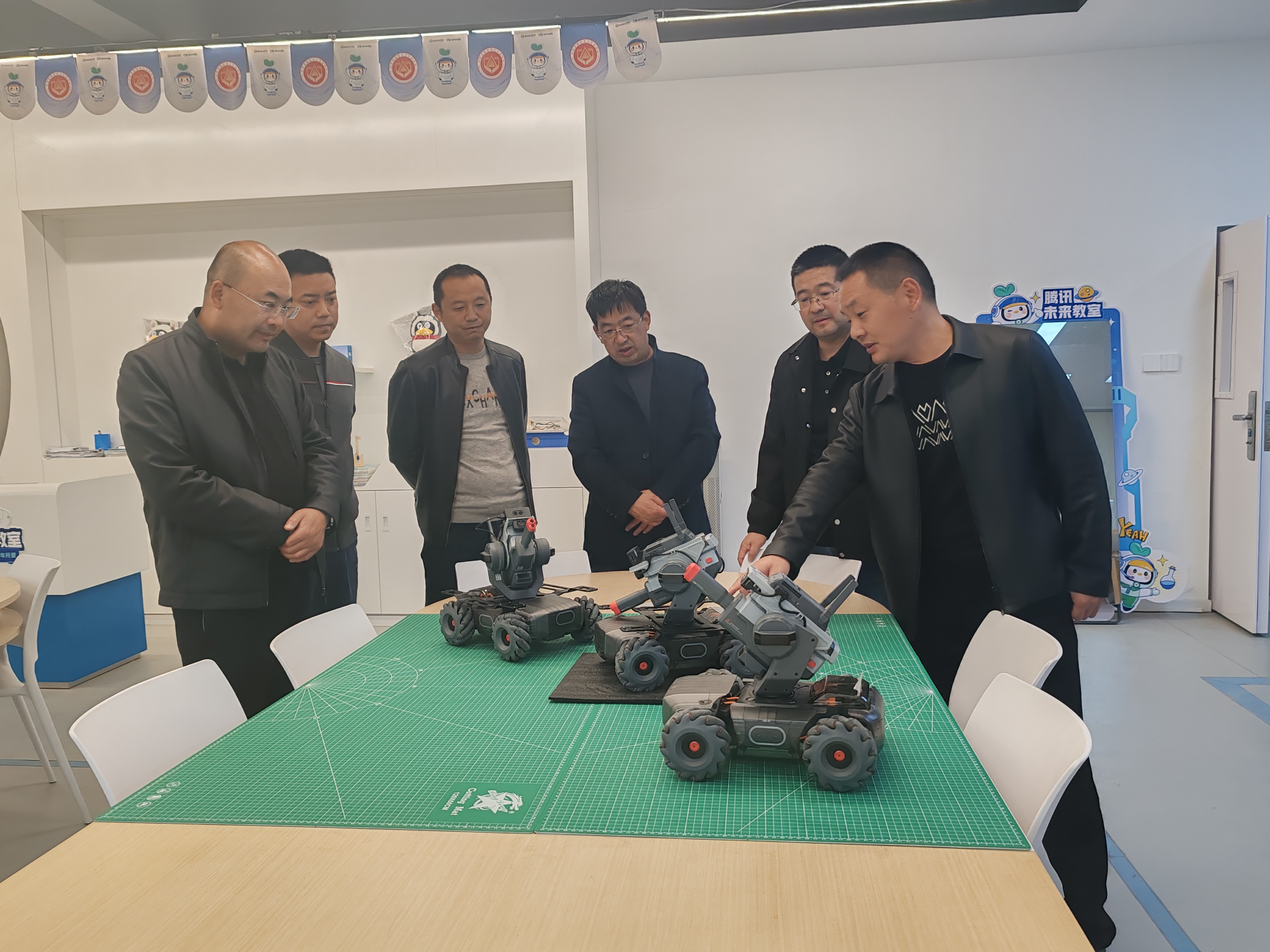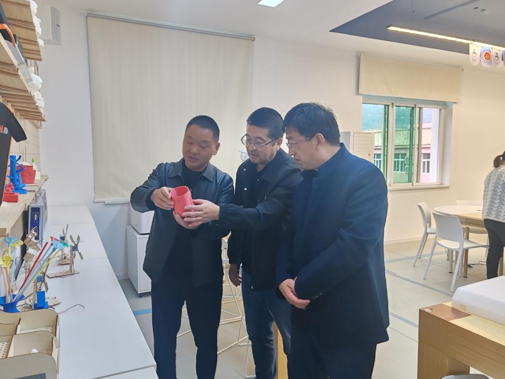 调研活动中,调研组成员听取了许伟从公司办学特色、发展历程、教学成绩、公司管理、团队队伍建设、教研教改等方面的介绍,参观了公司文化墙、未来教室、许伟劳模创新工作室、理化生VR实验室、各功能室、阅览室、图书室等教学设施。在甘肃省第一个腾讯未来教室,调研组成员饶有兴趣地观摩了3D打印、图形化编程、智能机器人、VR等先进智能设备,欣赏了孩子们3D打印出的精心设计的笔筒等校园文创产品,并对公司在科技素质教育方面做出的努力大加赞赏。