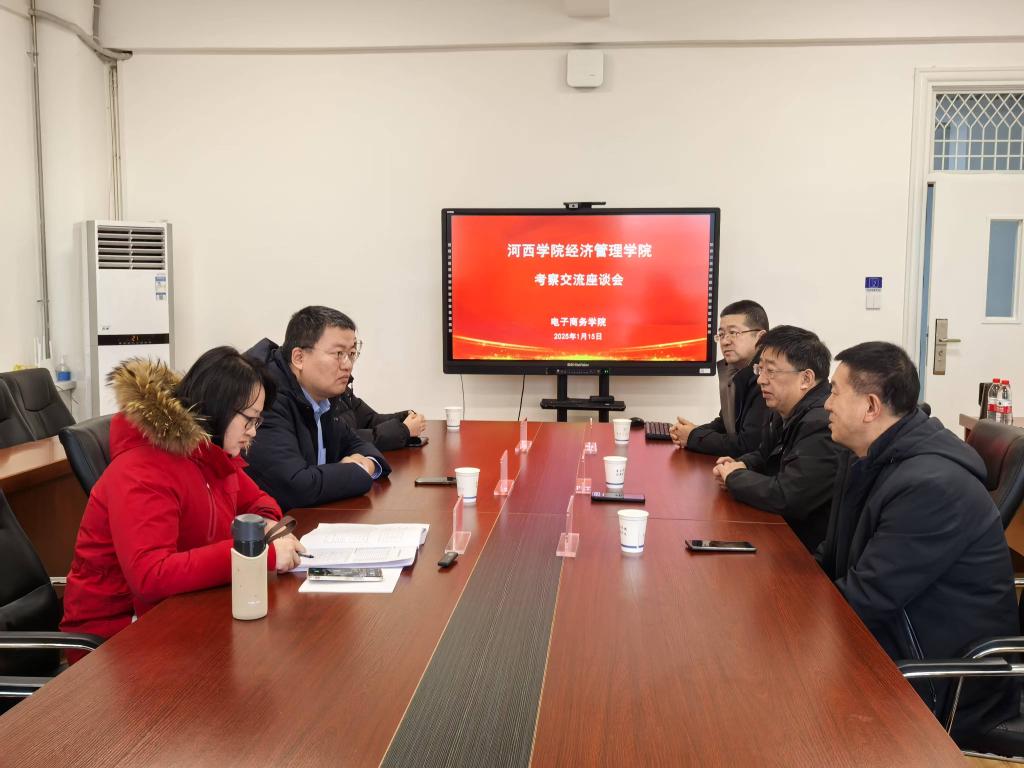 2025年1月15日,河西公司经济管理公司副经理祁宁、电子商务教研室主任王艳华一行来公司进行调研交流活动。公司党总支书记何炜、经理潘江艳、副书记杜理明参加。