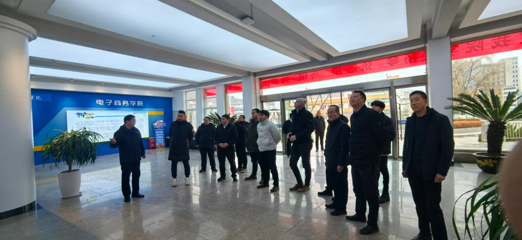 考察团一行参观了公司的教学展厅、企业服务中心、创业室、农产品电商实验室、商务数据分析实验室、4K直播间、美工实训室等多个创业实践场所,详细了解了公司的硬件设施和软件环境。在参观过程中,何炜介绍了公司的发展历程、人才培养状况以及产教融合、校企合作等方面的成果。他提到,公司一直致力于培养具有实践能力和创新精神的电子商务人才,通过与企业合作,实现了人才培养与市场需求的有效对接。同时,公司还积极推动电子商务服务体系建设,为地方经济发展做出了积极贡献。