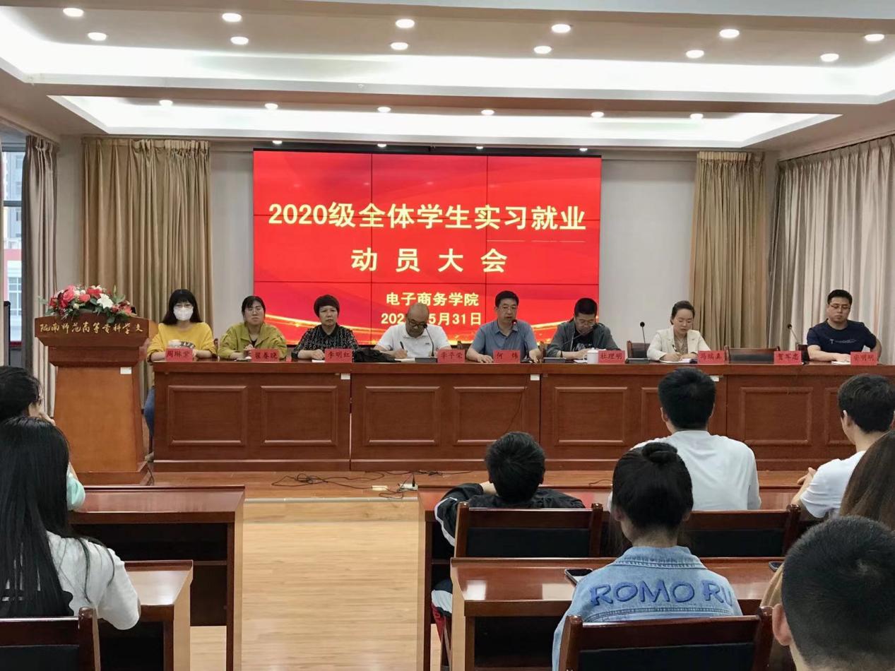 5月31日晚,公司在三楼多功能报告厅召开2020级员工实习就业企业对接会。经理何炜,副经理李平荣、杜理明,20级班主任及全体员工参加会议,义乌微畅网络科技有限公司、人本股份有限公司、上海云备财务咨询公司等8家企业负责人进行线上宣讲。对接会由何炜主持。