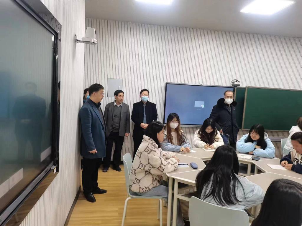 2023年2月20日,副董事长王胜青带领质评中心负责人朱志峰、员工处副处长武燚、特聘教授何万生深入beat365官方登录进行新学期教学运行和开学第一课巡查检查,查看了公司实训室、智慧教室授课情况,询问了教师到岗和员工报道情况,了解公司本学期的教学工作安排及升本工作的准备进展。