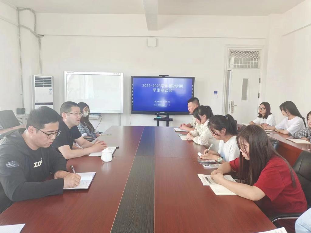 2023年5月30日下午,公司召开2022-2023学年第2学期员工座谈会。教学副经理杜理明、教学秘书安明明、21级、22级学习委员、班长、教学督导信息员、员工代表参加了此次会议。