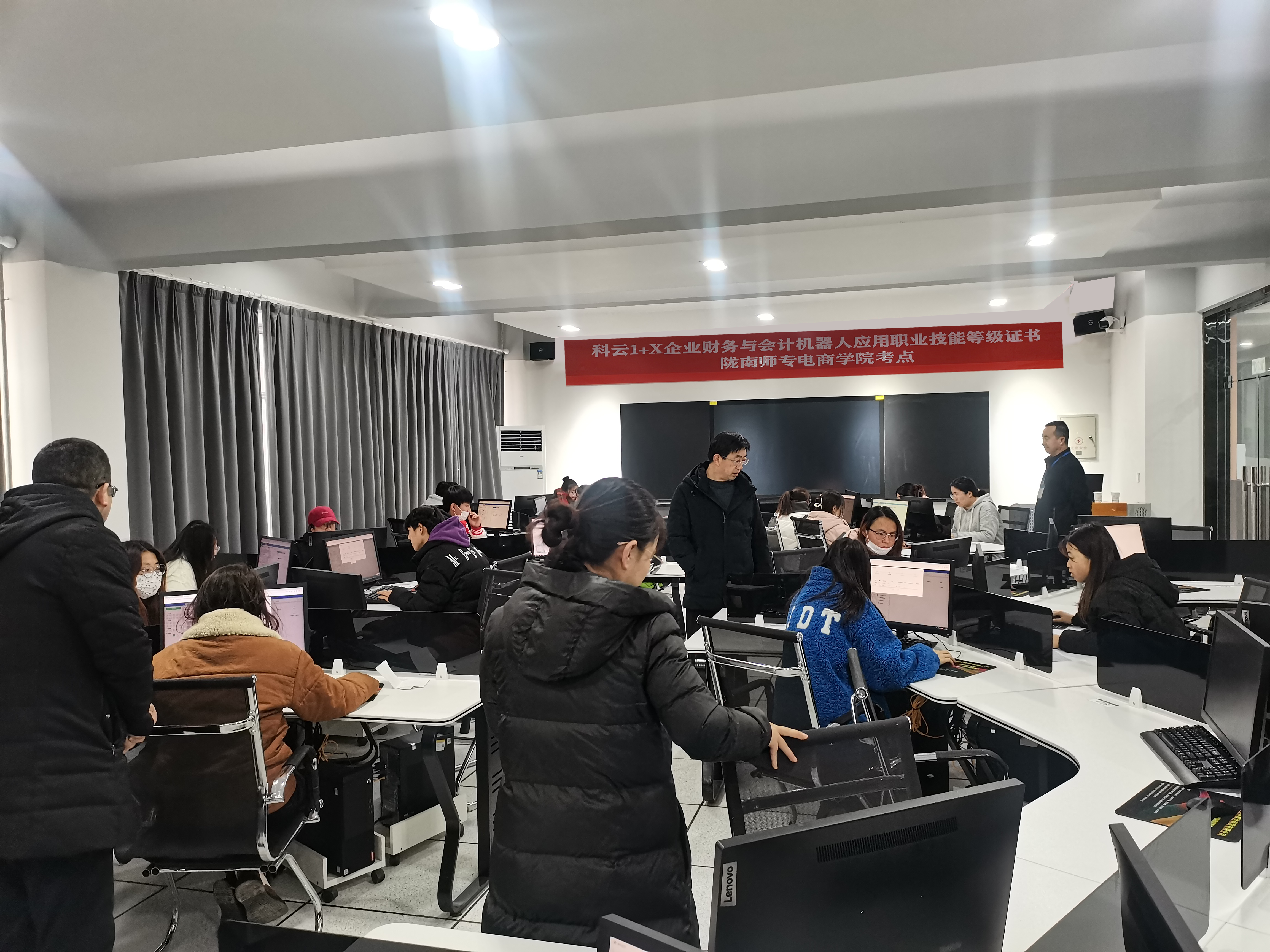 为贯彻落实《国家职业教育改革实施方案》精神,积极推进1+X证书制度试点工作,12月23日上午,“1+X”企业财务与会计机器人应用职业技能等级证书认证考试在公司举行,2022级大数据与会计专业41名员工参加考试。