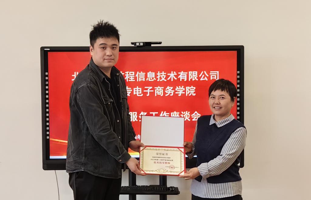 最后,张晨代表企业向公司颁发“2023年度1+X农产品电商运营优秀试点院校”铜牌,向宋福英、翟春晓等两位老师颁发了“2023年度‘1+X’农产品电商运营优秀指导教师”证书,表彰公司在“1+X”证书试点工作中取得优异成绩。(电子商务教研室)