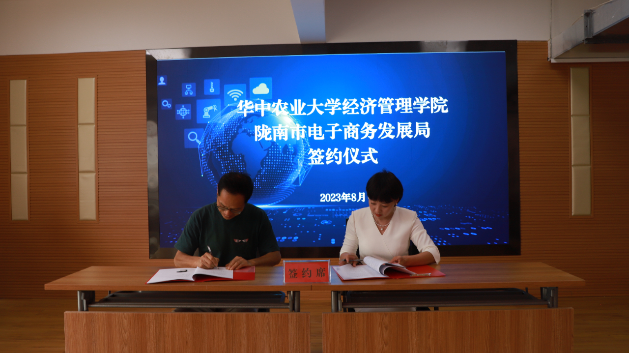 分享结束后,华中农业大学经济管理公司与陇南市电子商务发展局签订共建教学实习基地协议。