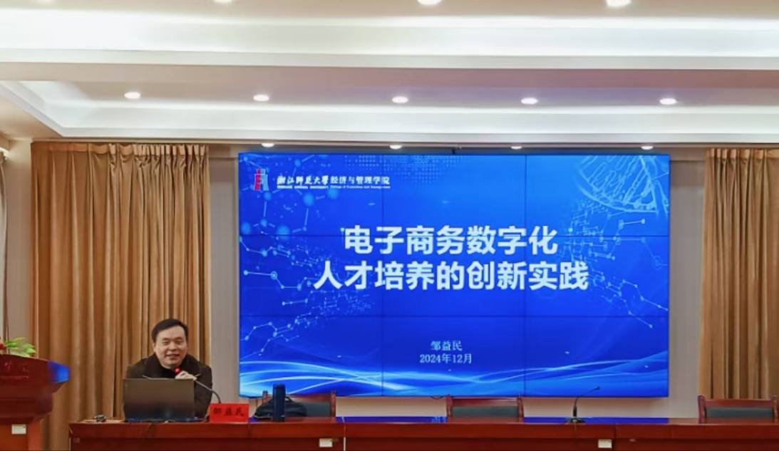 12月16日下午14点30分,在“甘肃省高等职业院校电子商务专业骨干教师高级研修项目”的培训现场,浙江师范大学经济与管理公司的邹益民教授应邀为培训教师带来了一场主题为“电子商务数字化人才培养的创新实践”的精彩讲座。
