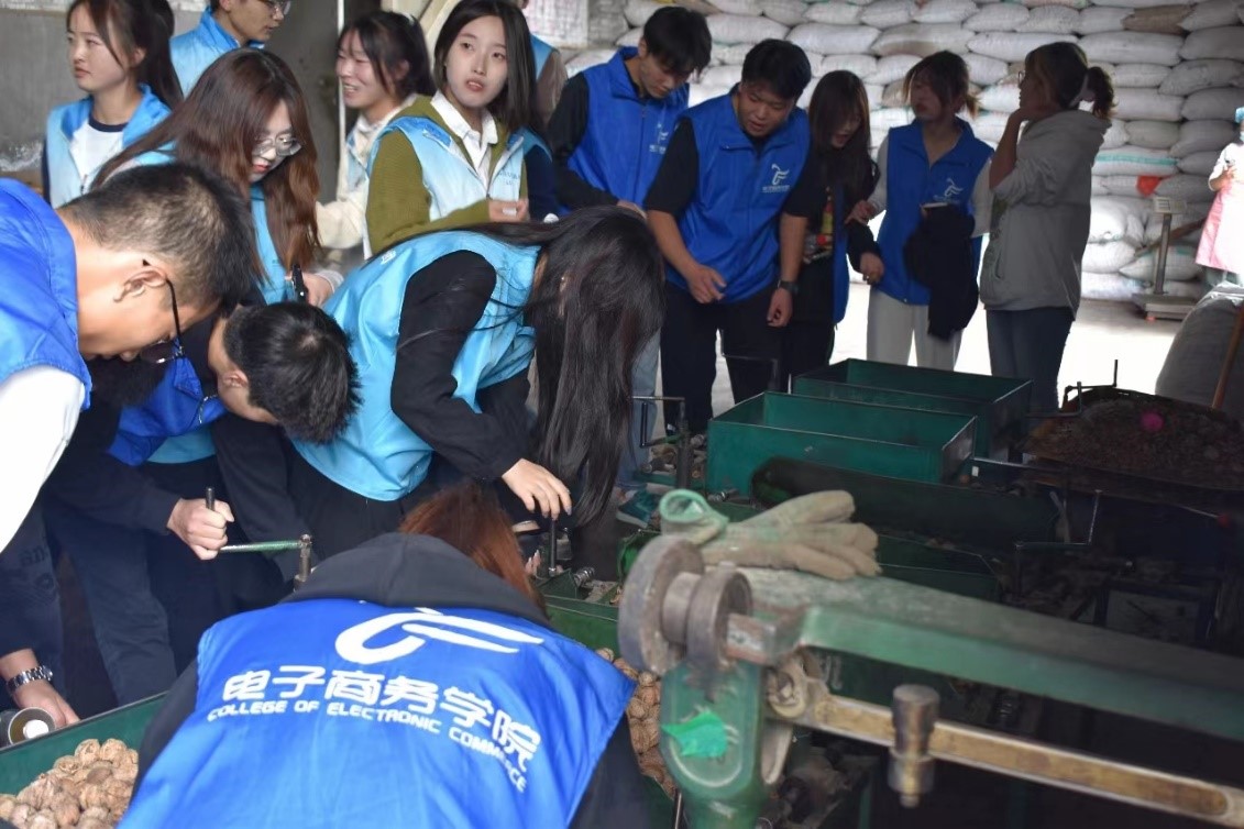 活动第一站来到了位于小川镇的甘肃千里丝路国际贸易有限公司,参加了在这里举行的陇南市首单跨境电子商务B2B(9810)发车仪式,随后,同学们在工作人员的带领下参观了企业核桃产品加工、包装车间,听取了企业发展、物流及销售情况的介绍,从中感受到陇南跨境电商的发展氛围,进一步激发了员工对跨境电商探索的兴趣。据悉,甘肃千里丝路国际贸易有限公司在跨境电商9710业务和外贸出口0110业务领域取得较大突破,成功将以成县核桃为代表的陇南优质农特产品销往俄罗斯等国家和地区,发车仪式举办将首次以跨境电商出口海外仓(9810模式)申报出口。