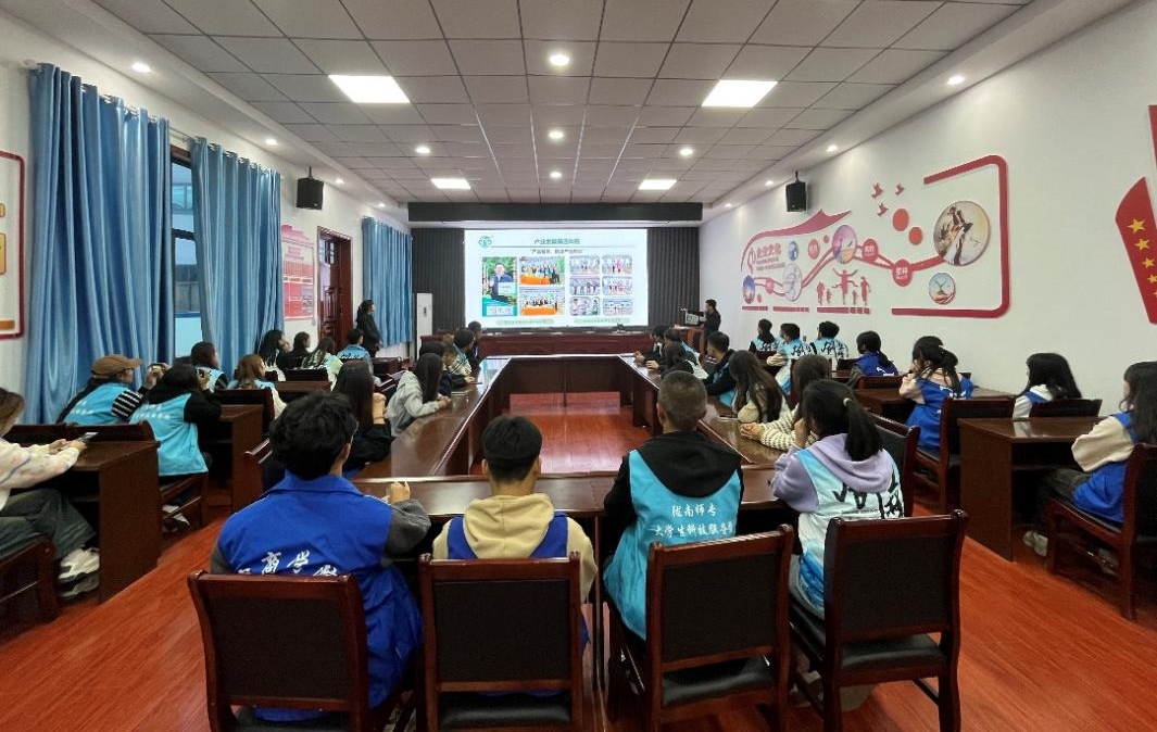 鑫园药业工作人员向师生介绍公司经营模式