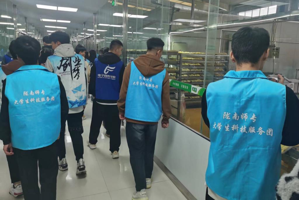 在甘肃兆丰农业开发有限责任公司,师生们在工作人员带领下参观了豆制品加工车间生产流水线,详细了解了企业运营情况,产品主要通过9710跨境电商B2B模式出口,远销美国、韩国、新加坡等世界十多个国家和地区,实现年产值可达7000多万元。