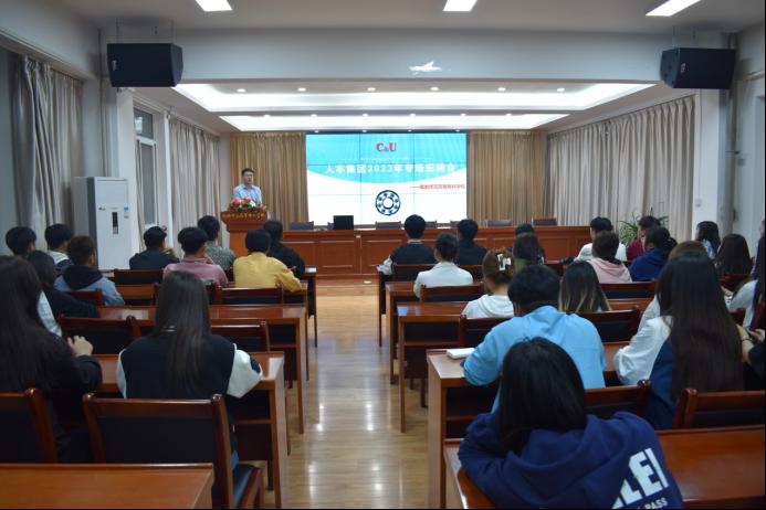 2023年4月20日晚,人本股份有限公司在beat365官方登录报告厅举行线上线下实习就业宣讲会。公司经理、辅导员,2020级毕业生及2021级全体员工320人参加了宣讲会。